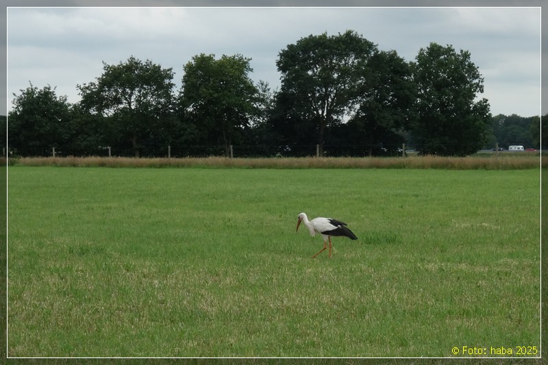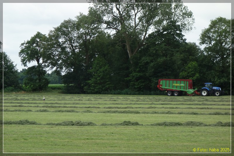 Südlich der Vechte half dieser Landwirt dem Storch, Futter zu finden.